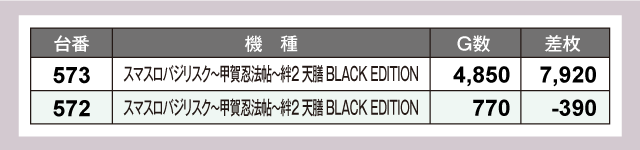 また、その他の機種を見てみると『Lパチスロ戦姫絶唱シンフォギア 正義の歌』で+6,000枚超、『スマスロバジリスク~甲賀忍法帖~絆2 天膳 BLACK EDITION』で+7,000枚超と、人気のスマスロもしっかりとその実力を発揮していた。