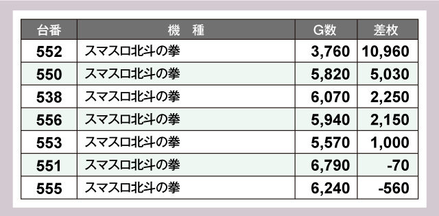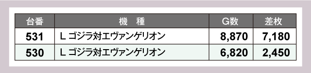 また、その他の機種を見てみると『スマスロ北斗の拳』で万枚超の+10,960枚、『パチスロ からくりサーカス』と『L ゴジラ対エヴァンゲリオン』からは+7,000枚超が発生しており、人気のスマスロの活躍が目立っていた。