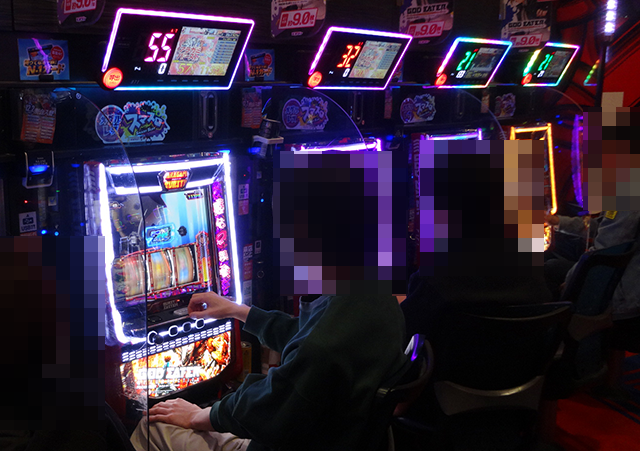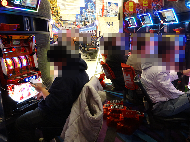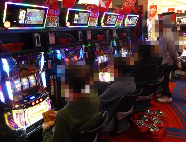 14時半頃のパチスロでは、沖スロが大にぎわいとなっていた。