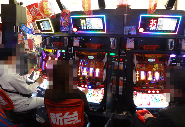 「スマスロ北斗の拳」においても、プレイヤーたちは笑顔で遊技中。
