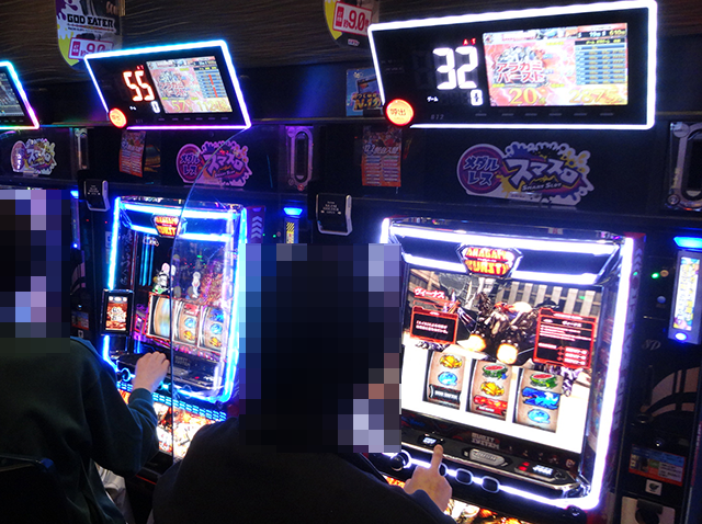スマスロも支持を集めており、あちこちで楽しそうに遊技をおこなっている姿を発見。