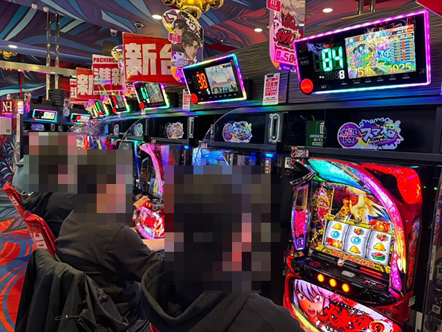 スマスロや沖スロなど、多くの機種が支持されており、随所が盛況となっていた。