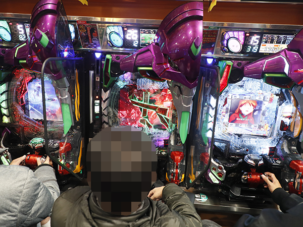 15時ごろの4円パチンコを見てみると「新世紀エヴァンゲリオン〜未来への咆哮〜」や「e Re:ゼロから始める異世界生活 season2」が高稼働。プレイヤーの嬉しそうな表情を多数確認している。
