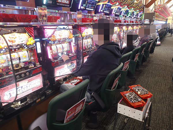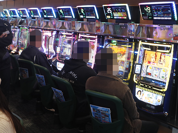 取材時は既に多くのプレイヤーが集結し、パチンコ・パチスロを問わずにぎやかな状況となっていた。