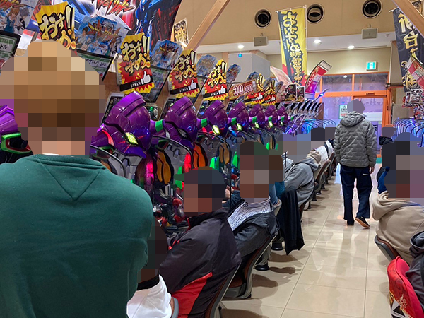 14時半ごろの2円パチンコを見てみると「新世紀エヴァンゲリオン〜未来への咆哮〜」が高稼働。プレイヤーの嬉しそうな表情を多数確認している。