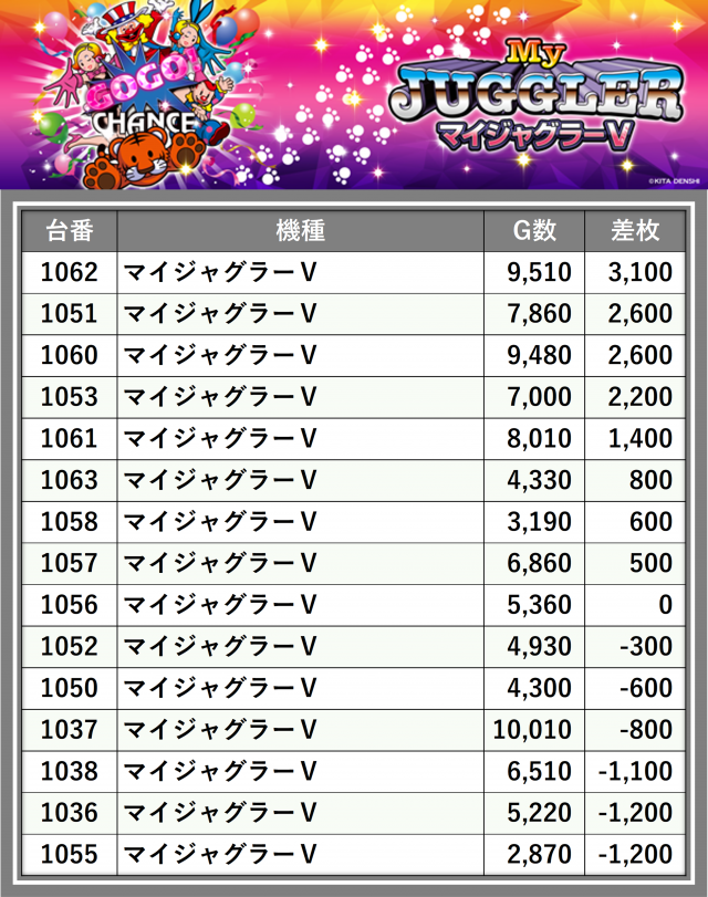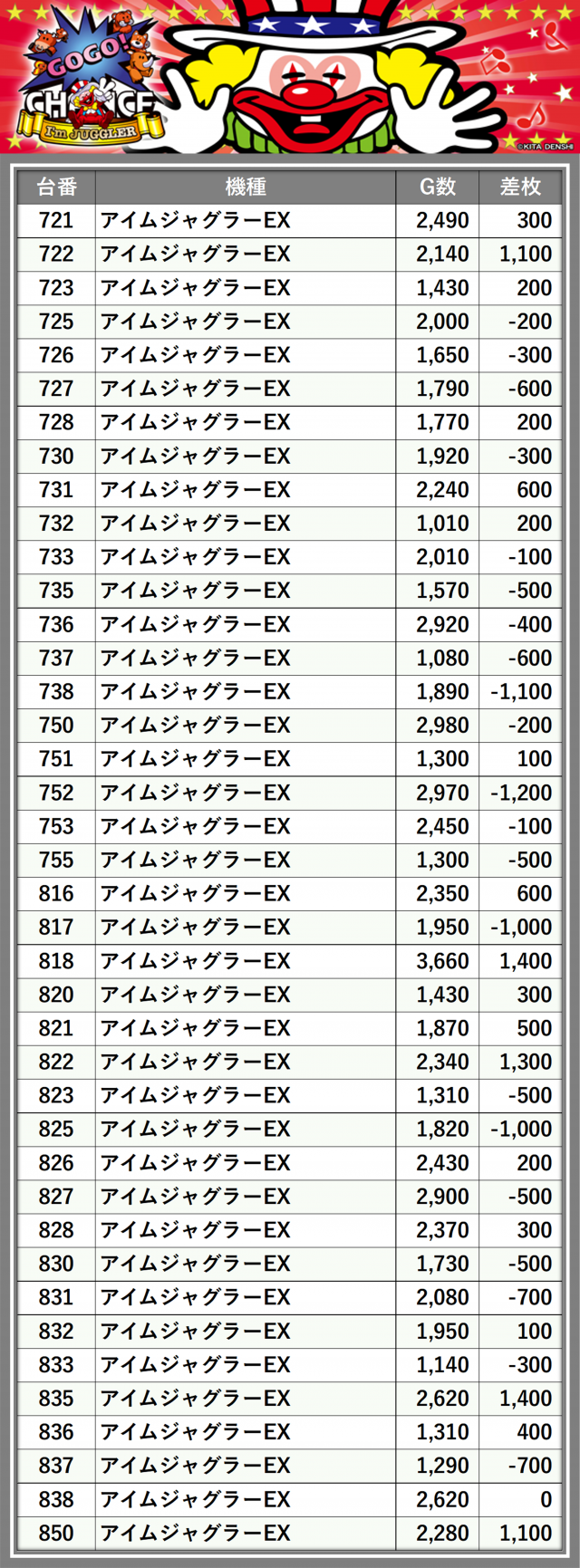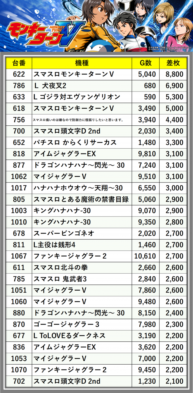 厳選された取材対象機種をはじめ、その他スロット全体から好記録が飛び出した!プレイヤーが楽しんだ1日を下記データにて振り返ってみて欲しい。