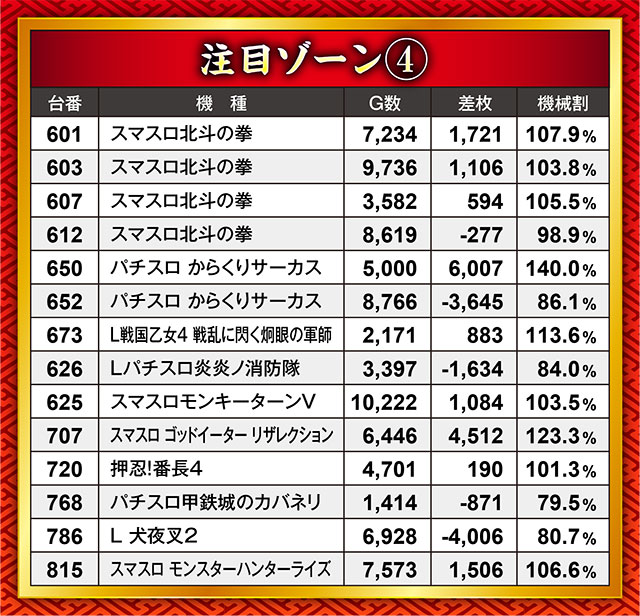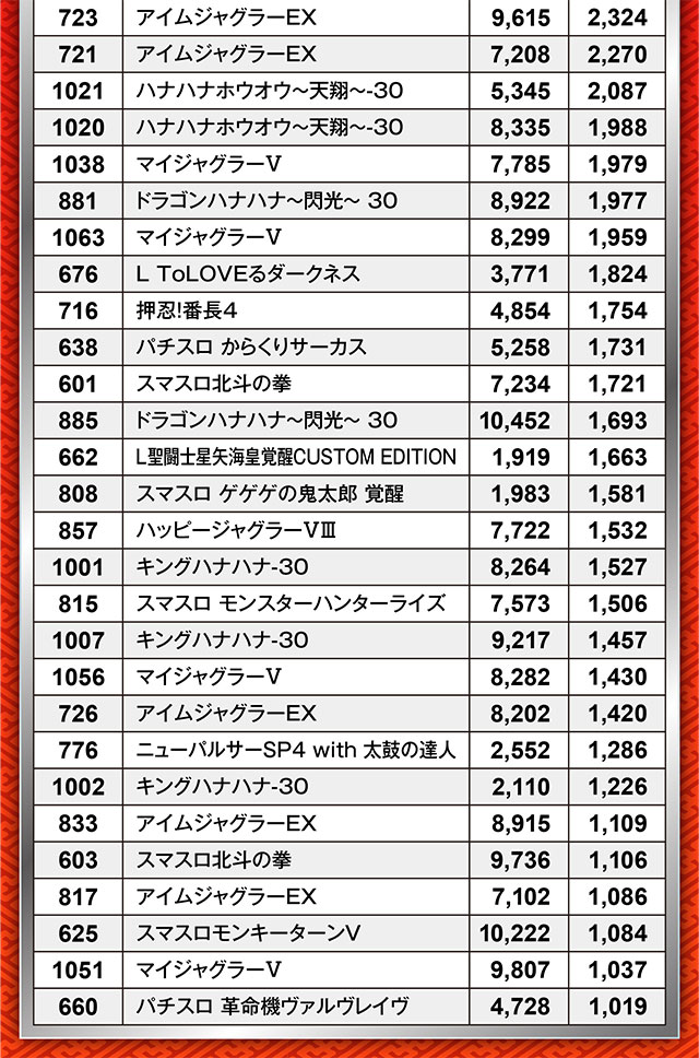 『スマスロ ゴッドイーター リザレクション』から4,500枚超え、『パチスロ からくりサーカス』から6,000枚超え記録が生まれるなど、見せ場は豊富。反面、そのポテンシャルを活かせぬままマイナスで終わってしまった台も…。