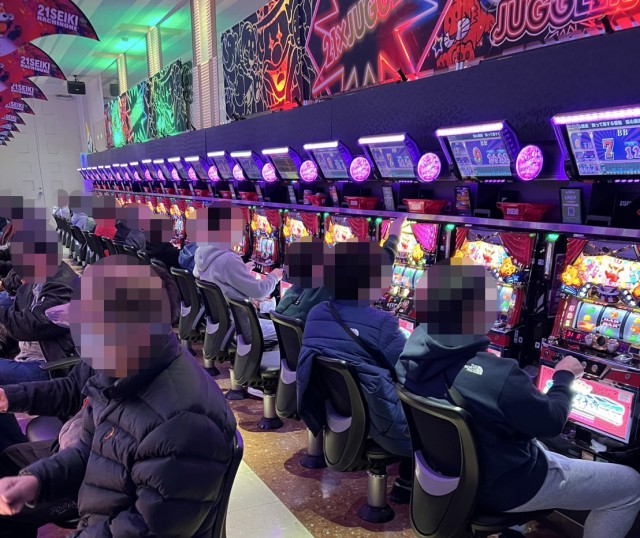 予想通り、『ジャグラー』コーナーから順当にプラス台が誕生。21決戦取材の日のお約束となりつつあるだけに、この日も『ジャグ』島からは途切れぬ大当りサウンドが鳴り響いていた。