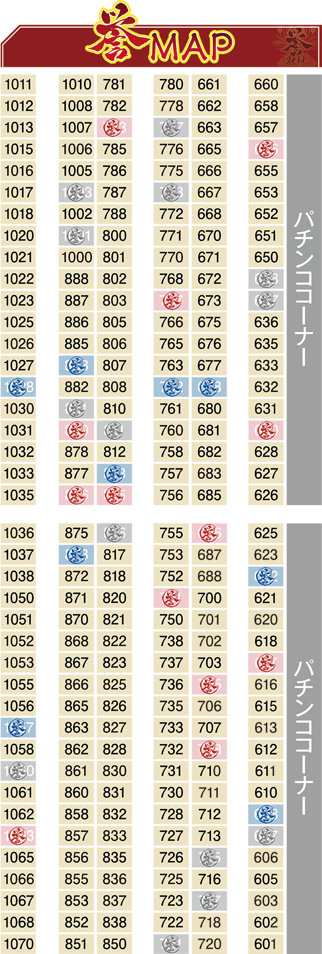 前回11月22日は、3台の赤誉マークが出現したが、今回は1台のみ。それでも誉マーキングの3台は上々の働きを見せ、特に好調だった617番台が5,000枚超えを達成することとなった。