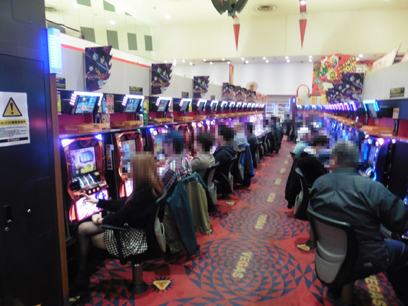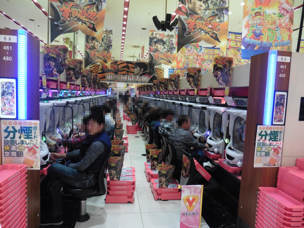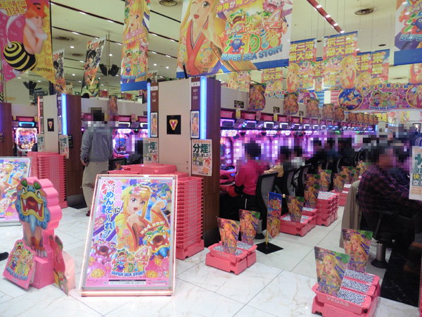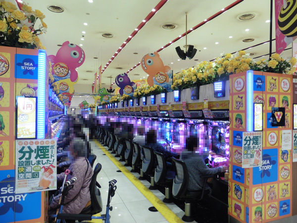 1円パチンコの低貸し玉コーナーの稼働率も良好。こちらも海物語シリーズを筆頭に、楽しそうにパチンコを満喫しているプレイヤーの姿がとても印象的だった。
