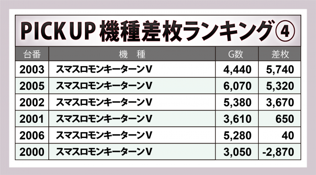 ここでは高いプラス台割合や飛び抜けた好記録が光った6つのマシンに注目。