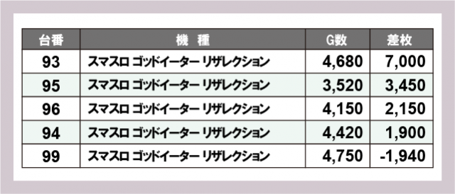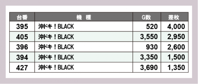 ※差枚数順に掲載しています