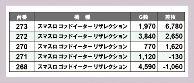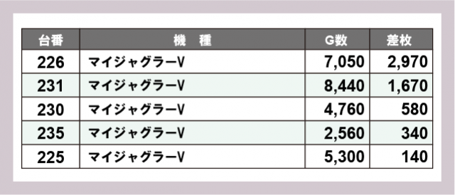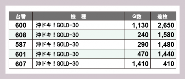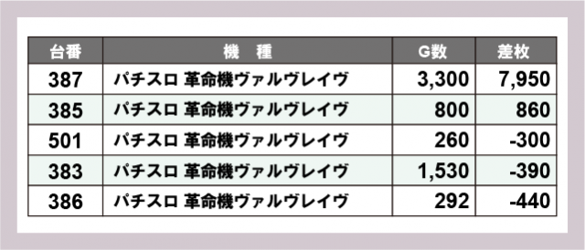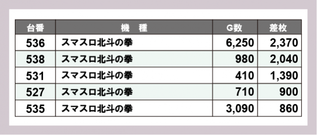 ※差枚数順に掲載しています