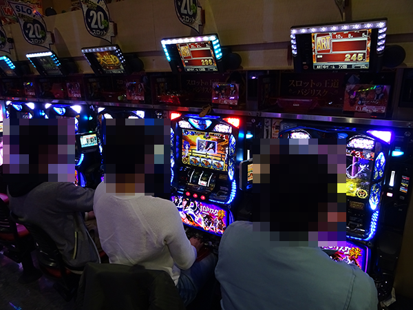 午後になっても、20円パチスロでは「バジリスク~甲賀忍法帖~絆」が盛況。