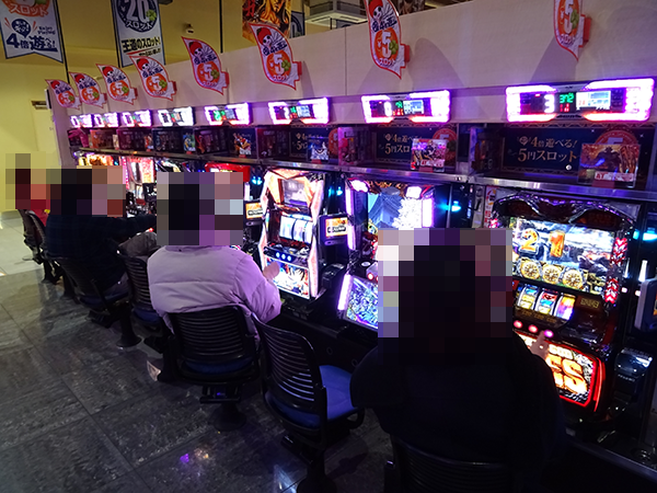 取材日である3月17日は、朝イチから多数のプレイヤーが来店し、20円パチスロの「バジリスク~甲賀忍法帖~絆」などで遊技をはじめていた。