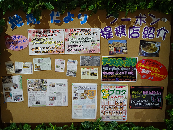 地域のニュースなどが貼りだされている掲示板や手書きのポップなどもあり、あたたかみも感じられた。