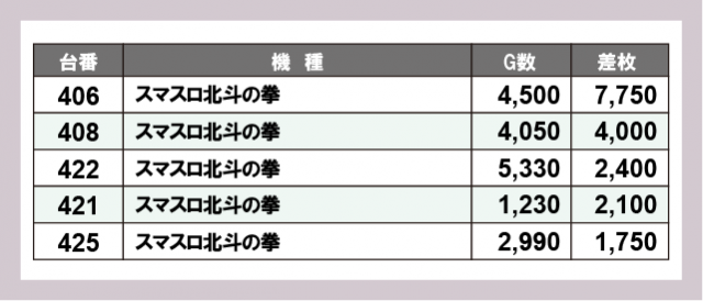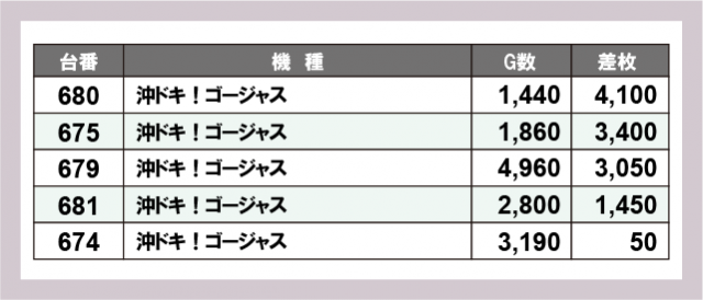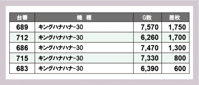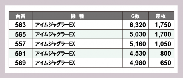 ※差枚数順に掲載しています