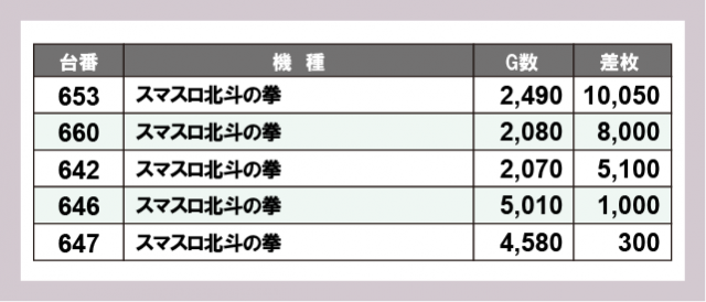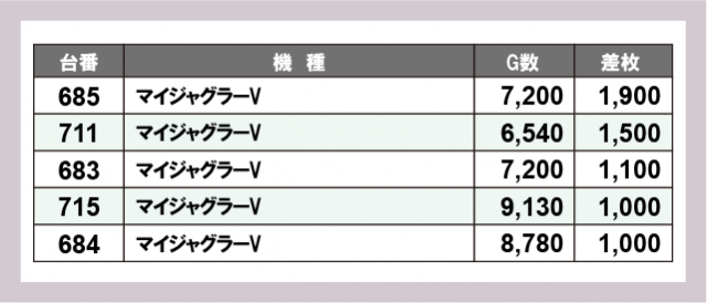 ※差枚数順に掲載しています