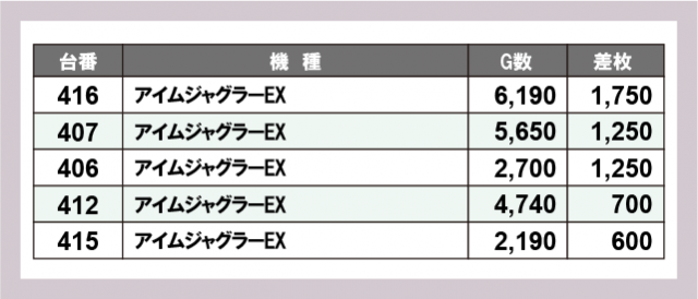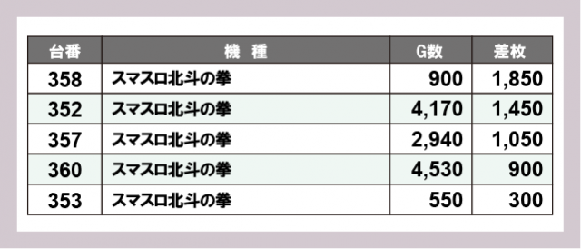 ※差枚数順に掲載しています