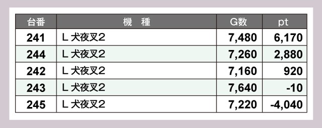 さらに272番台『パチスロ かぐや様は告らせたい』や547番台『L主役は銭形4』も盛況で、どちらも1万pt超の優秀な結果を残している。