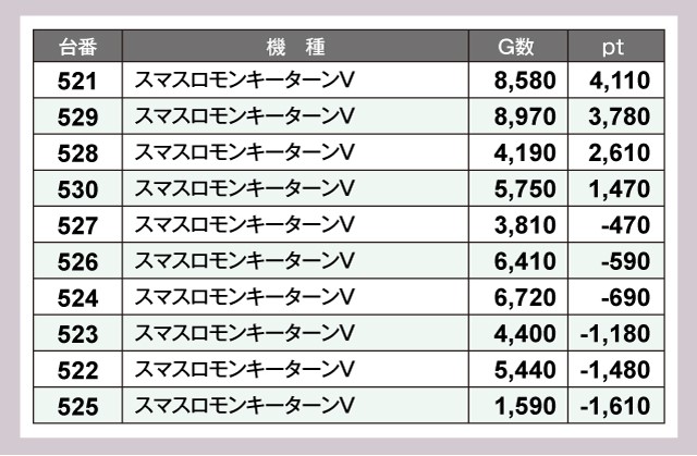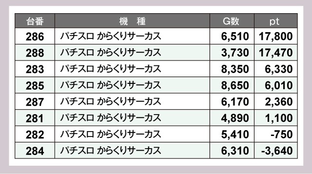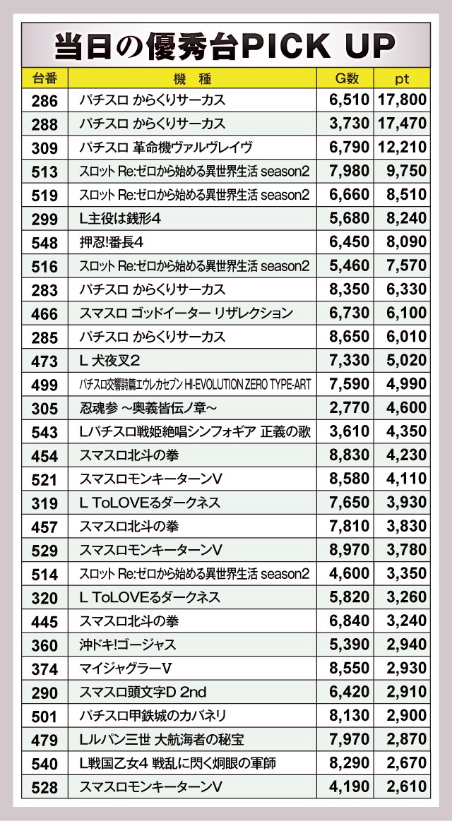 ※差枚pt順に掲載しています。