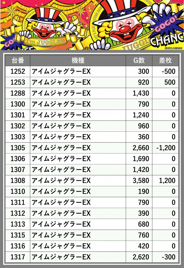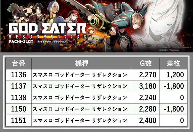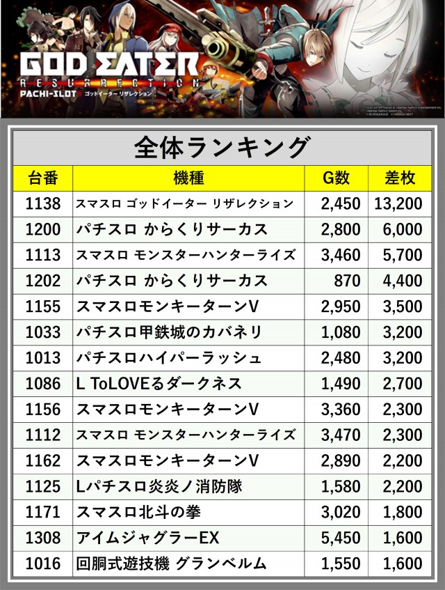 厳選された取材対象機種をはじめ、その他スロット全体から好記録が飛び出した!プレイヤーが楽しんだ1日を下記データにて振り返ってみて欲しい。