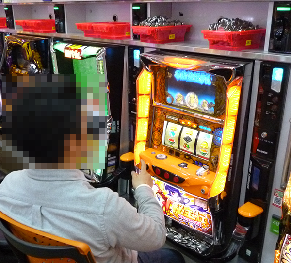15時頃のパチスロでは、「バジリスク~甲賀忍法帖~絆」や「沖ドキ!」に華やかな光景が広がっていた。