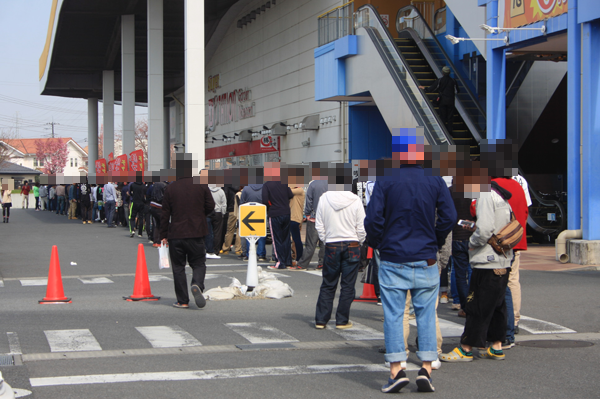 まずは朝イチの並びだが、9時30分からの入場抽選と一般入場を合わせたプレイヤーの人数は300名以上。