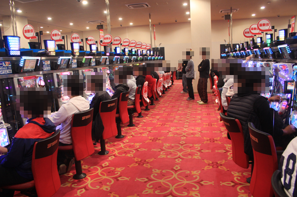 14時を過ぎた時点で稼働率はホール全体でみても8割を超えており、朝イチから人気のあった機種やコーナーはほぼ満席。