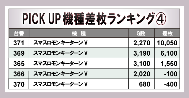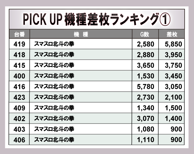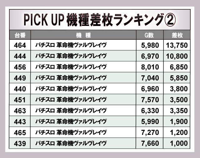 ※差枚数順に掲載しています。