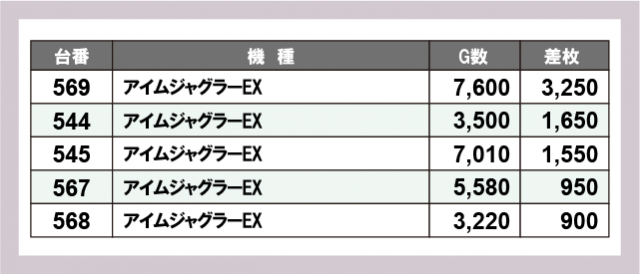 ※差枚数順に掲載しています