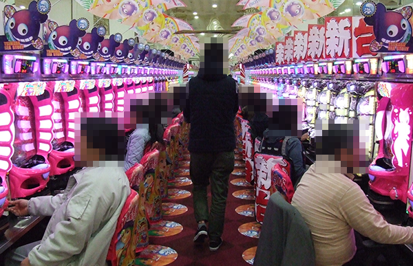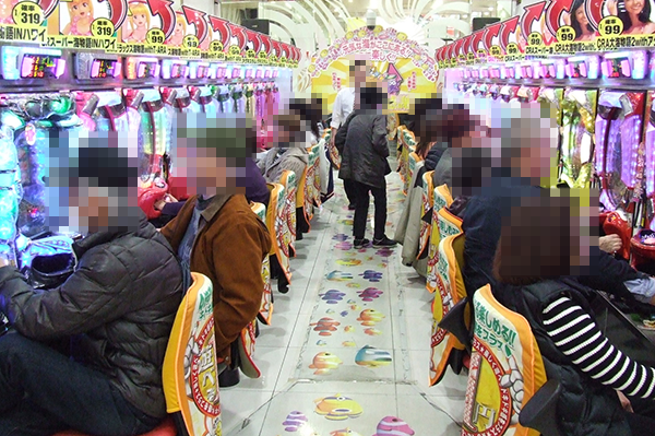 2円パチンコや1円パチンコも大勢のプレイヤーでにぎわっていた。