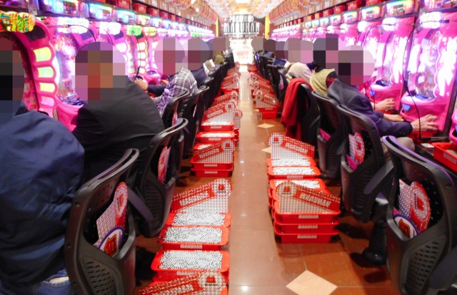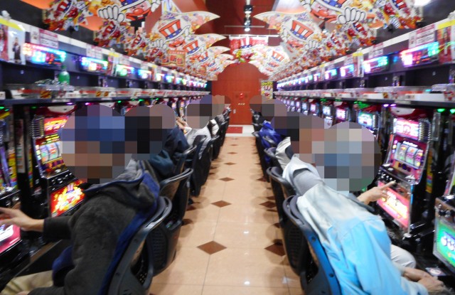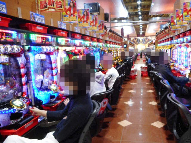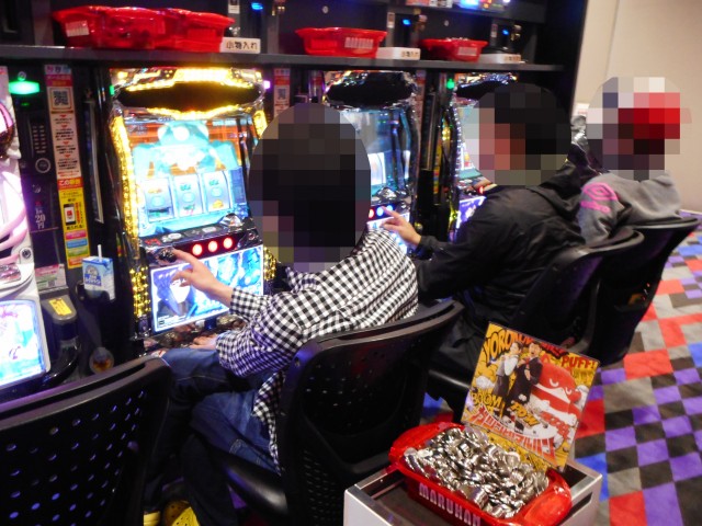 15時過ぎの4円パチンコでは、新台の「CRシティーハンター~XYZ 心の叫び~」や「CR弾球黙示録カイジ沼3」が人気。遊技を楽しんでいるプレイヤーたちのうれしそうな表情も目にしている。