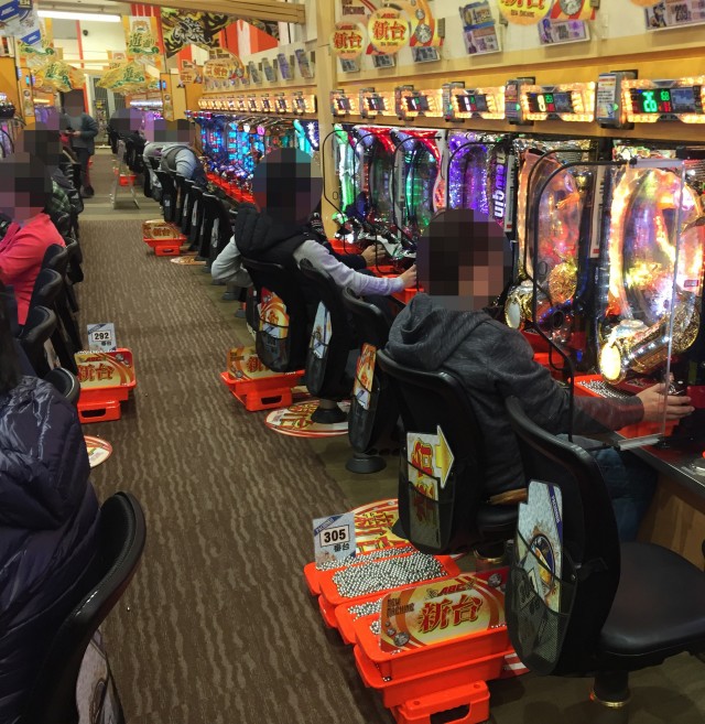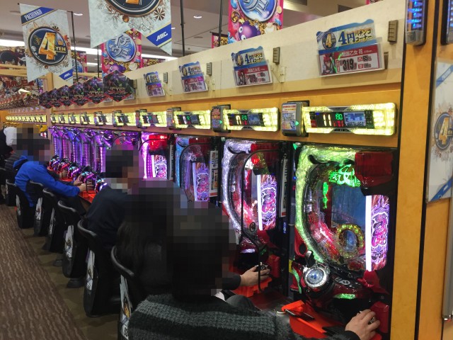 16時過ぎの4円パチンコの状況をうかがうと、「ぱちんこCR銭形平次withでんぱ組.inc」や「CR聖闘士星矢〜BEYOND THE LIMIT~」などで、機種の魅力を存分に堪能しているといったプレイヤーを目撃。