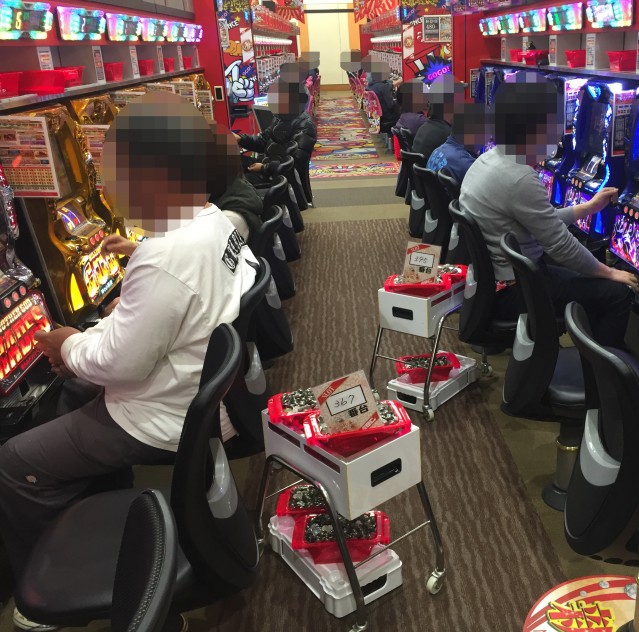海物語シリーズを中心に1円パチンコも人気。機種のスペックを問わずに楽しまれており、プレイヤーの笑顔であふれるシマ内は明るい雰囲気につつまれていた。