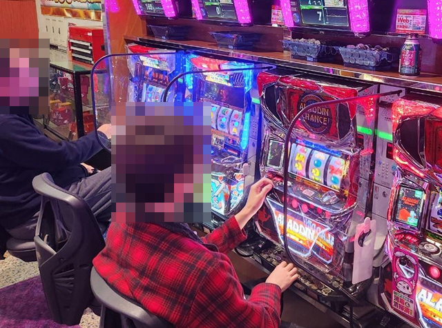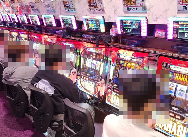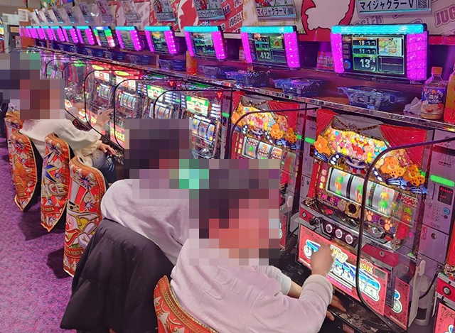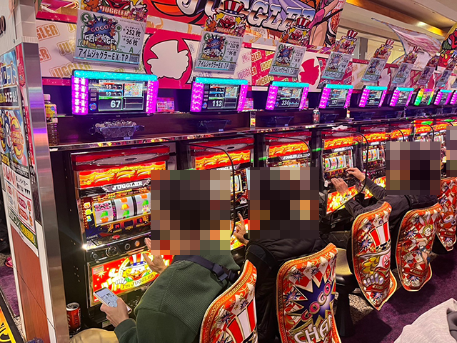15時過ぎのパチスロでは、ジャグラーシリーズがとくに盛況となっていた。