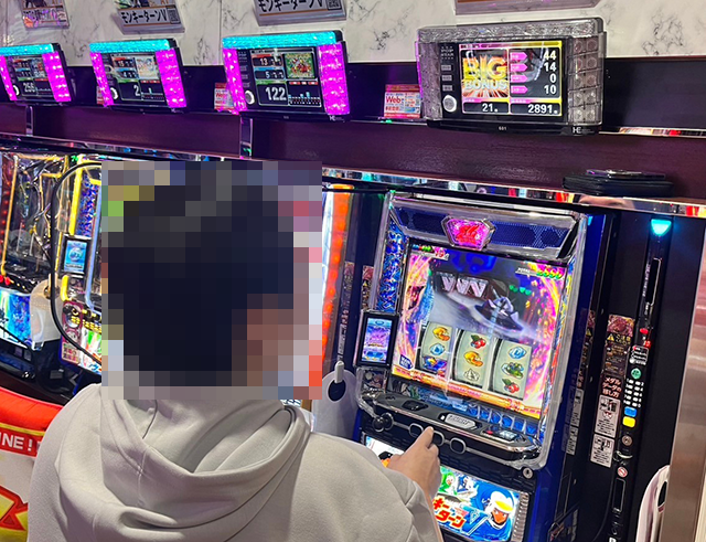 「マイジャグラーⅤ」と「アイムジャグラーEX」にて、1箱以上の持ち玉で遊技をおこなっているプレイヤーを目撃。