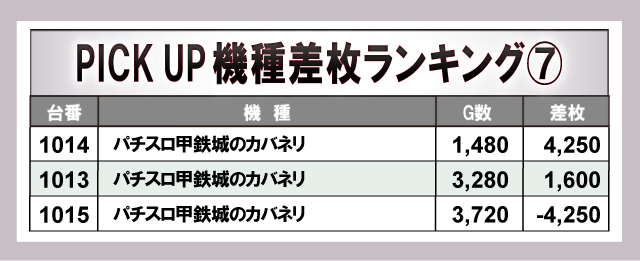 機種単位での活躍を見ると、上表9機種が好感触を掴んでいたのは間違いないだろう。全体的に大きなマイナスが少ない状況で、ファンはすぐに手ごたえを感じては時間の許す限りレバーを叩いていた様子が窺える。