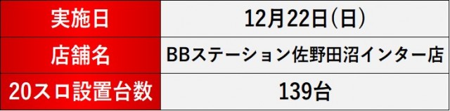 12月22日(日)BBステーション佐野田沼インター店にて、DMMぱちタウンの新感覚取材「スロセレ」を実施。