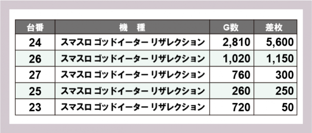 ※差枚数順に掲載しています