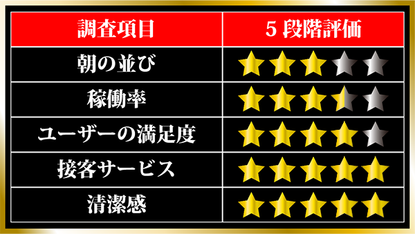 明るい笑顔で接し、丁寧な対応を心がけているようなスタッフも好印象。遊技台などの清掃もこまめにおこない、つねにキレイな状態を維持していた。