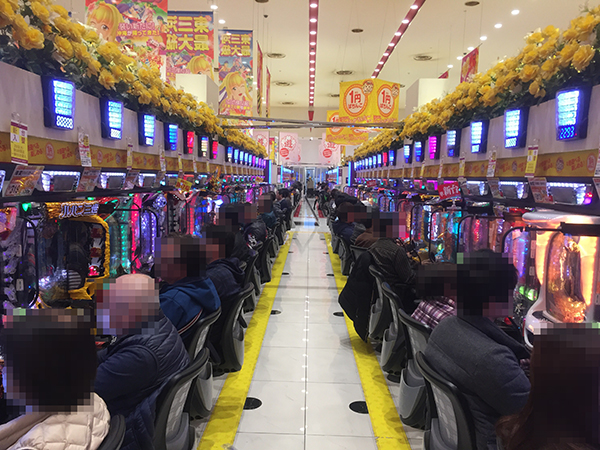 パチンコの「CRスーパー海物語IN沖縄4」も稼働9割と朝から活気があふれていた。