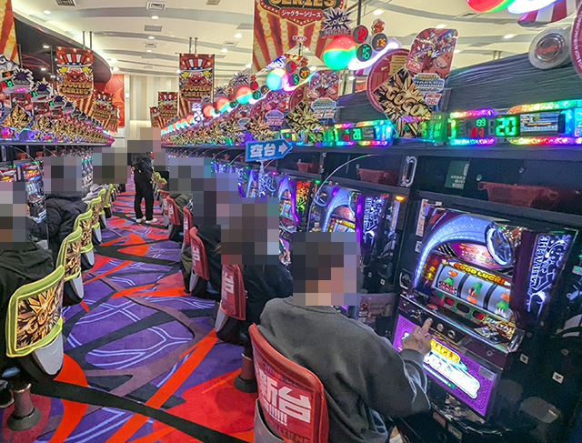 広々とした店内では、多くのプレイヤーがうれしそうに遊技中。