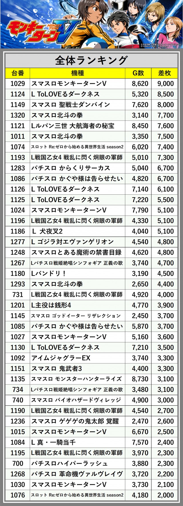 厳選された取材対象機種をはじめ、その他スロット全体から好記録が飛び出した!プレイヤーが楽しんだ1日を下記データにて振り返ってみて欲しい。