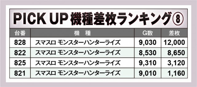 『L ToLOVEるダークネス』『スマスロ北斗の拳』『スマスロ ゲゲゲの鬼太郎 覚醒』『スマスロ モンスターハンターライズ』『スマスロモンキーターンV』は万枚OVERを達成し、店内の盛り上がりを大きくリード。その他の台も大台突破台が目立っており、館内は熱気に包まれていたと言える。もちろん回転数も8~9,000回転台が多く、好感触を得ていた様子が顕著だったのも見逃せない。