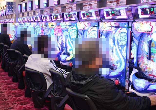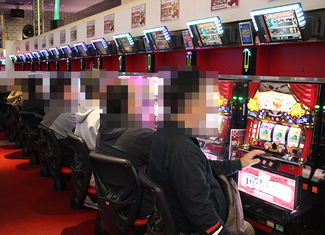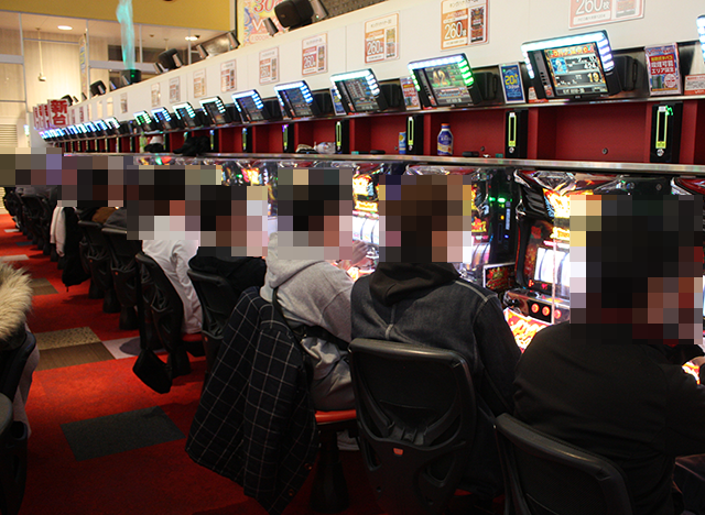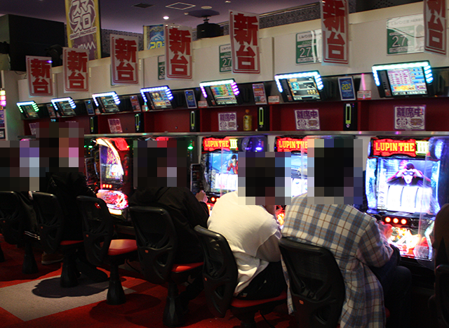 16時を過ぎた頃のパチスロでは、「スマスロ モンスターハンターライズ」と「Lルパン三世 大航海者の秘宝」が満席となっており、プレイヤーは笑みを浮かべて遊技をおこなっていた。
