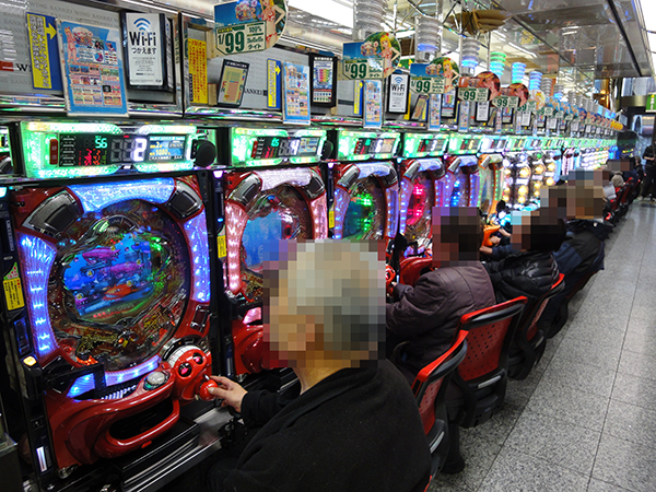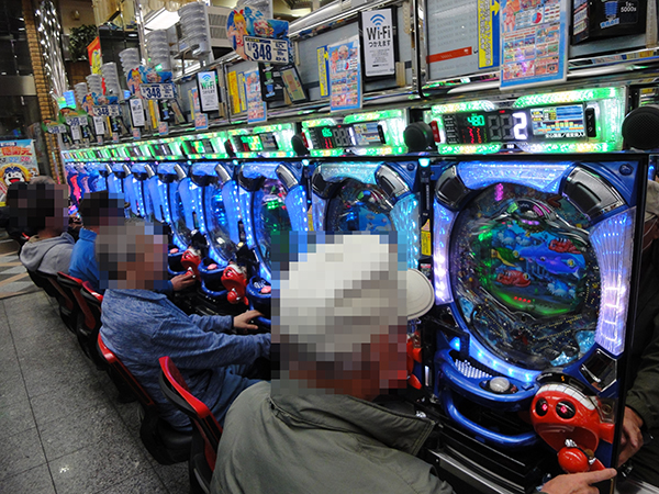 7割稼働をキープした1円パチンココーナーでは、主に海物語シリーズが高齢層に好まれており、和やかな雰囲気が漂っていた。