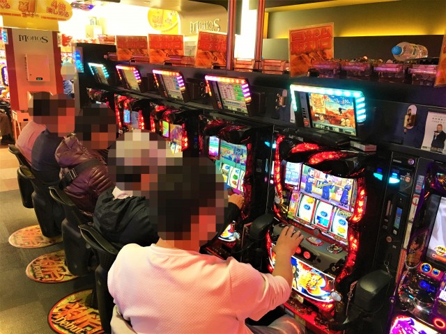 取材時にはたくさんのプレイヤーが来店しており、パチンコ・パチスロの各シマに明るい笑顔が広がっていた。