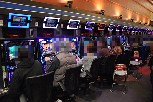 14時頃のパチスロをみてみると、「バジリスク~甲賀忍法帖~絆」や「ミリオンゴッド-神々の凱旋-」が大盛況。機種の性能を最大限に引き出しているといった姿があり、満足度も高そうであった。