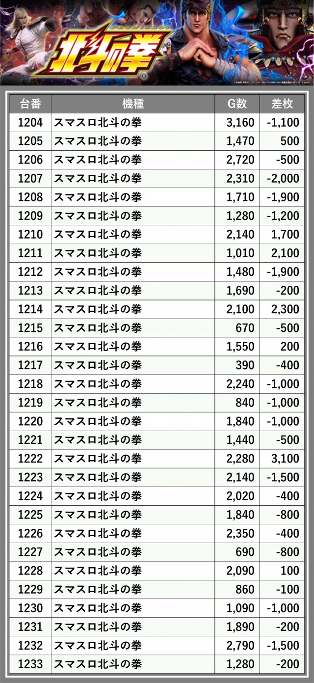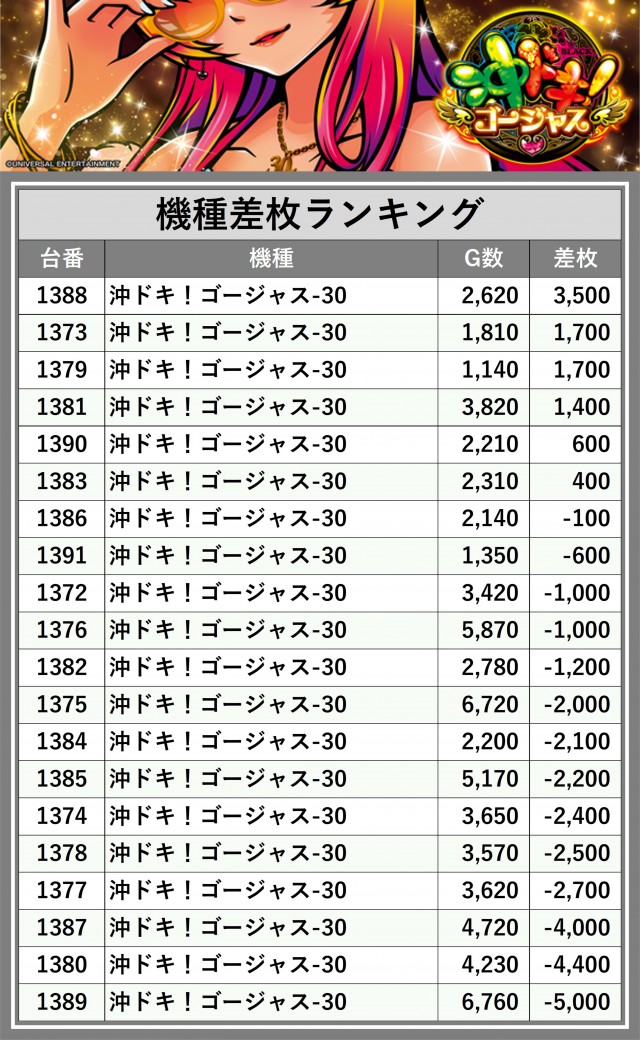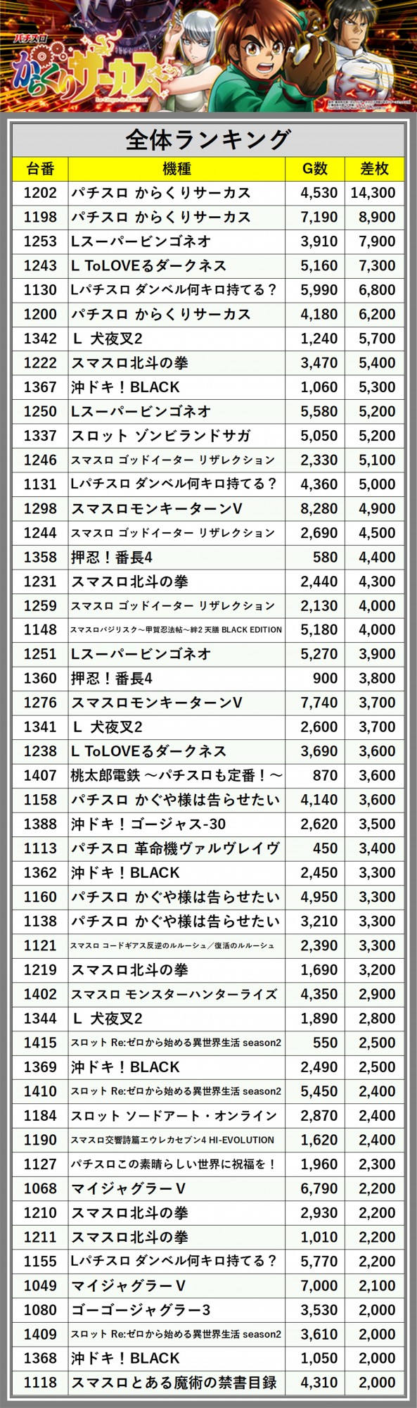 ※差枚数順に掲載しています